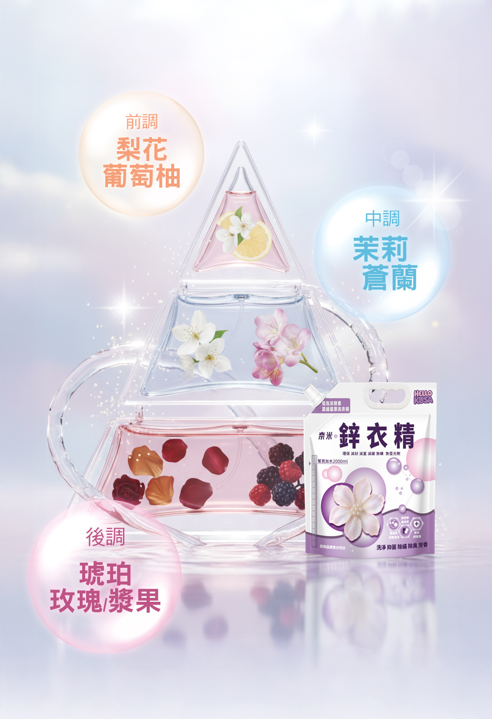 瑞士奇華頓植物花香香氛 × 奈米鋅 × 酵素泡泡科技